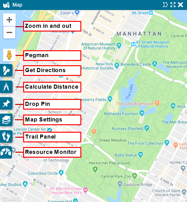 The map panel has the following icons: